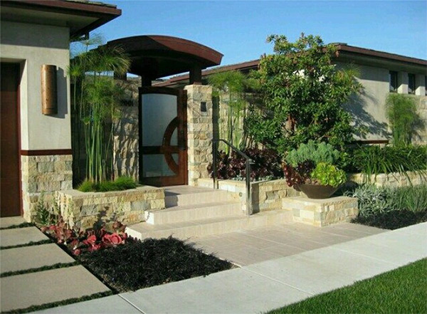 別墅庭院入口處植物的搭配是很重要的,入口處植物搭配的目的是要表現(xiàn)出別墅的私密性和安全性。通過組合一定數(shù)量的樹木勾畫入口處的主體特征,常見的綠色屏障可以起到與其它庭院分隔的作用,在視角上又具有一定的觀賞作用,對(duì)于業(yè)主來說,還起到一定的安全感作用。