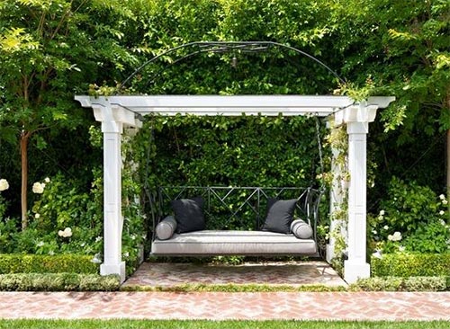在很多人的童年記憶中,秋千都承載了太多的美好記憶,鐵藝+原木+柔軟布藝打造出的精致秋千,搭配上周圍高大的灌木以及清新的植物,就能讓人在家也能輕松感受到郊外的自在風(fēng)情。