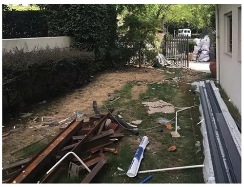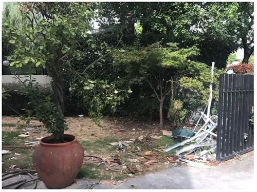 改造前的入口處,大盆栽也缺乏美觀,地面的垃圾已經(jīng)很難清理。原有的房屋建筑,把花園分成了狹小細長的兩段。面對這些的問題,設(shè)計師另辟蹊徑,將所有問題巧妙化解。