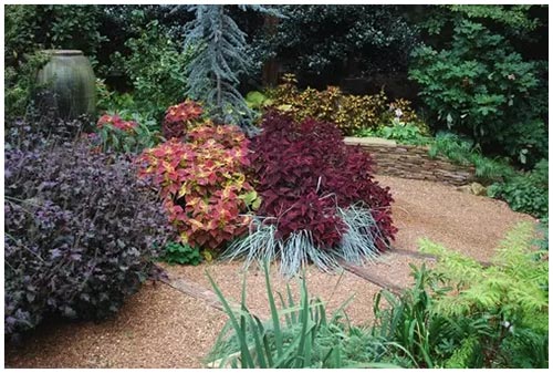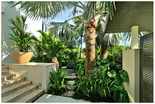 另外,庭園色彩也是影響庭園風(fēng)格的因素之一,對(duì)色彩規(guī)劃的一個(gè)技巧是根據(jù)建筑色彩與周圍環(huán)境確定庭園的主色調(diào)。觀葉植物在別墅花園的設(shè)計(jì)中很重要,在英國等歐洲國家,認(rèn)為花壇中栽種些觀葉植物是很自然的事情。此外還可考慮還有葉形的變化、質(zhì)感的差異等??傊ピ簶邮郊八耘嘀参锓N類應(yīng)根據(jù)家庭人員組成與年齡結(jié)構(gòu)有所選擇,同時(shí)也要遵循一定的形式原則。
