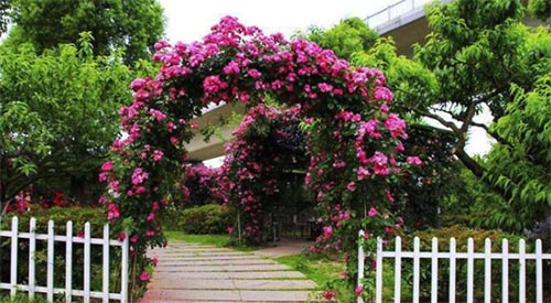 2、拱門:拱門是歐式庭院必不可少的元素,它不僅可以作為區(qū)域分割的工具,更是很美麗的裝飾。如果不喜歡爬滿藤蔓的鐵藝拱門,在入園處裝一扇木質(zhì)拱形門也是不錯(cuò)的主意,它可以讓你的庭院看上去似曲徑通幽,同時(shí)要注意旁邊籬笆和灌木的高度、密度與拱門類型配合。