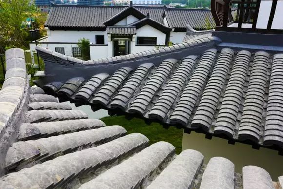采用陶土燒制的高密實度瓦片,四層瓦片全部采用人工鋪設(shè),以保證不滲水漏水。