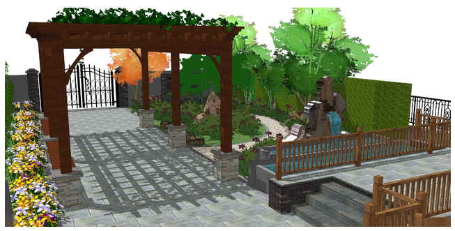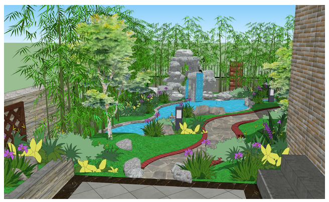 浪漫田園式庭院設(shè)計(jì)理念是輕松自然舒適的,不拘泥于形式。給人柔和豐腴富有動(dòng)感的享受。在庭院設(shè)計(jì)中還可以加入幾個(gè)主題風(fēng)格,再用些規(guī)則的線條加以連接,營(yíng)造出輕松自然的氛圍。